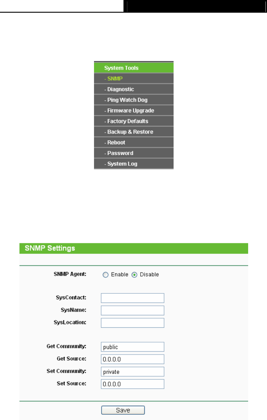 Selecting System Tools > SNMP to enable this function will allow the network management