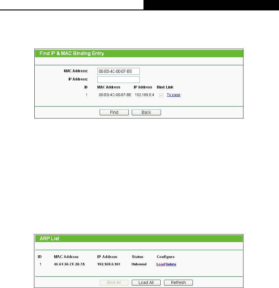 items on the ARP list. This page displays the ARP List; it shows all the existing IP & MAC Binding