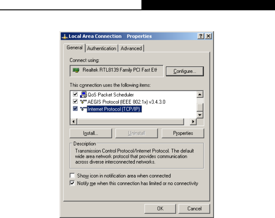 4) In the prompt page that showed below, double click on the Internet Protocol (TCP/IP).