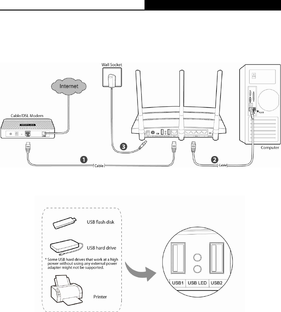 If you want to use the Router to share files or printer, plug the USB storage device to the USB port