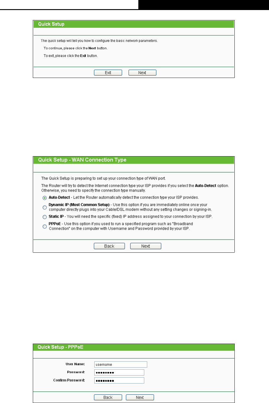 1) If the connection type detected is PPPoE, the next screen will appear as shown in Figure