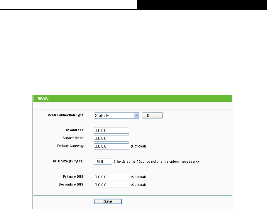 select Static IP. The Static IP settings page will appear, shown in Figure 4-4.