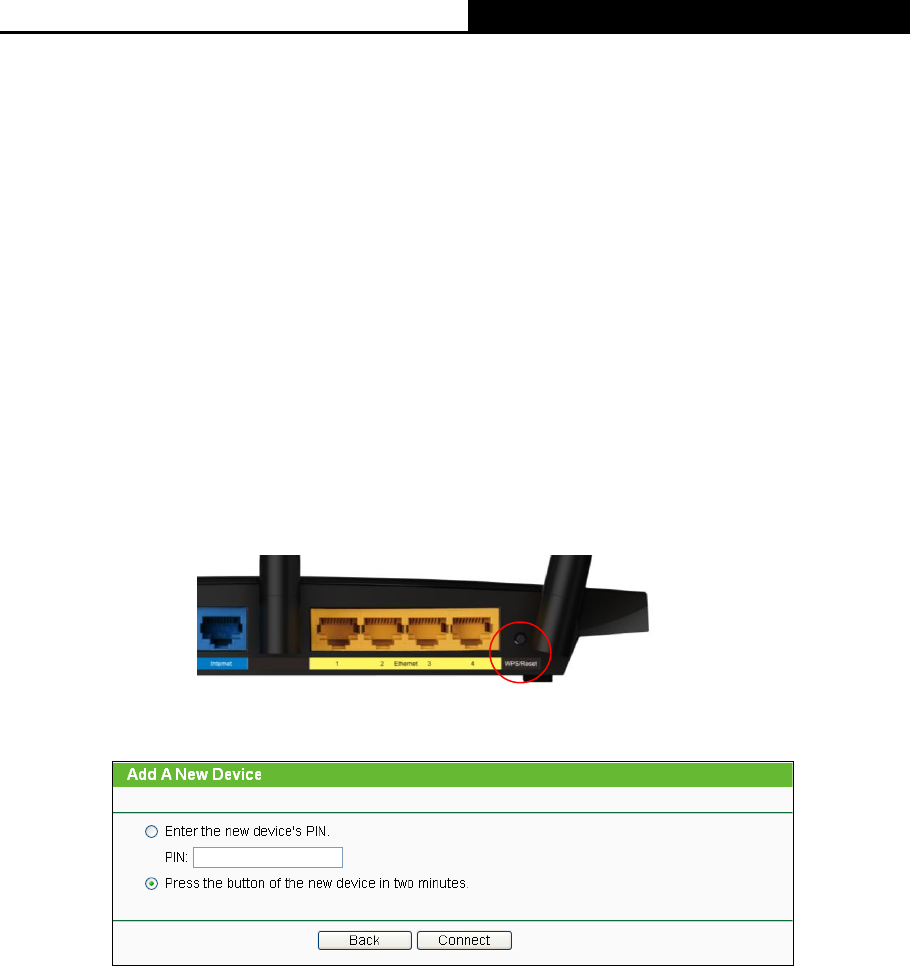 Step 1: Press the WPS/Reset button on the back panel of the Router, as shown in Figure 4-32.