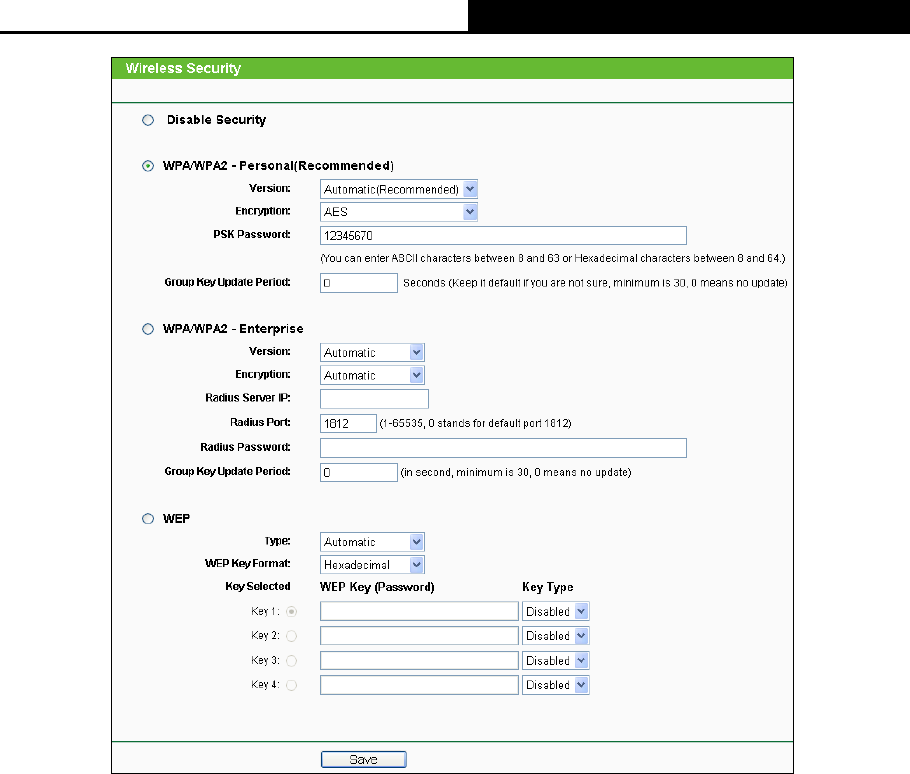 Disable Security - If you do not want to use wireless security, check this radio button. But it’s
