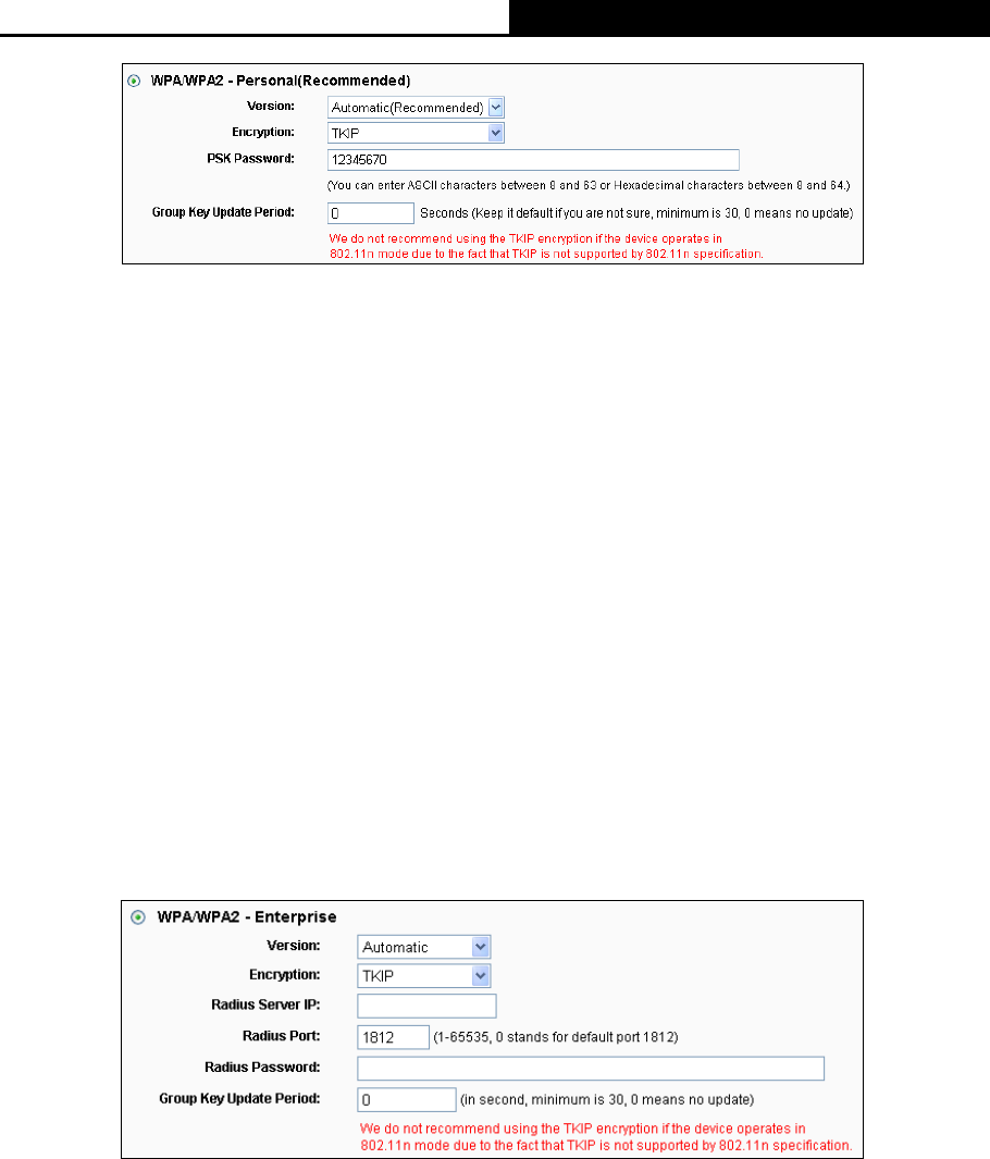 If you check the WPA/WPA2-Enterprise radio button and choose TKIP encryption, you will