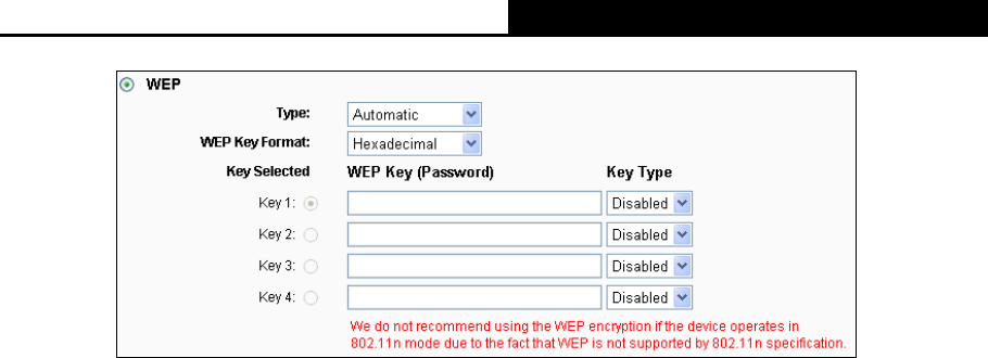 Type - you can choose the type for the WEP security on the drop-down list. The default