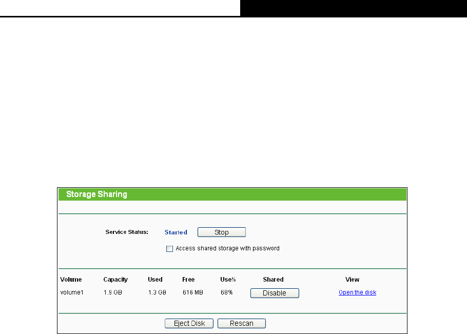 Start button to start the Storage Sharing service and click the Stop button to stop it.