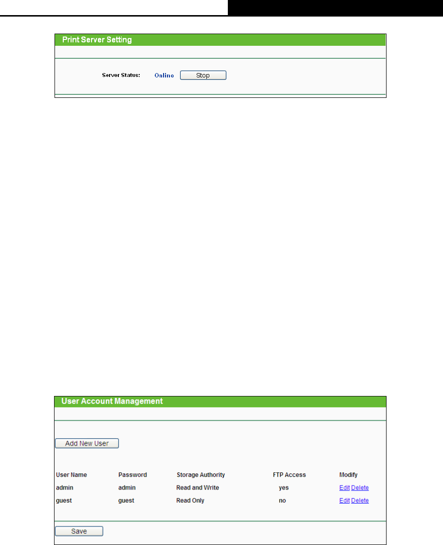 There are two states of the print server, they are as follows: