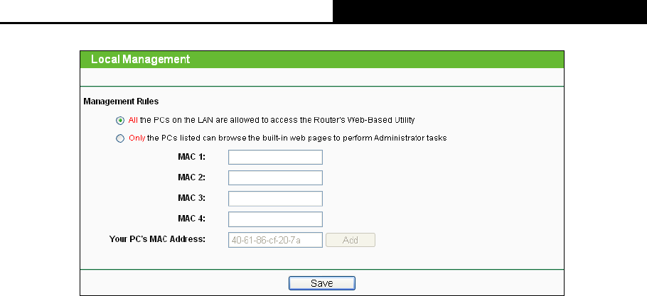 Web-Based Utility” is checked. If you want to allow PCs with specific MAC Addresses to access