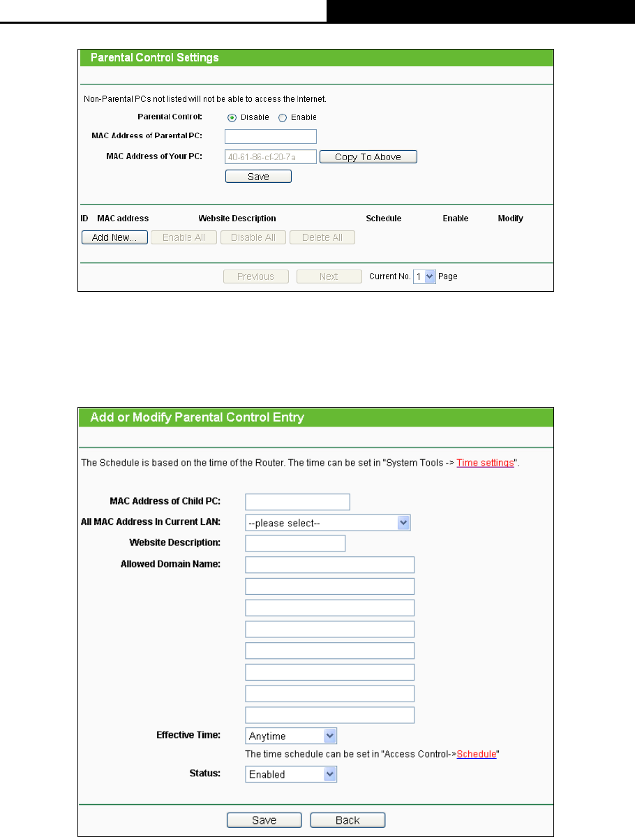 Parental Control - Check Enable if you want this function to take effect; otherwise, check