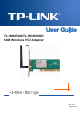 TL-WN350G/TL-WN350GD 54M Wireless PCI Adapter User Guide FCC STATEMENT This equipment has been tested and found to comply with the limits for a class B digital device, pursuant to part 15 of the FCC Rules. These limits are designed to provide reasonable protection against harmful interference in a residential installation.