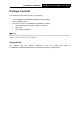 TL-WN350G/TL-WN350GD 54M Wireless PCI Adapter User Guide CE Mark Warning This is a class B product. In a domestic environment, this product may cause radio interference, in which case the user may be required to take adequate measures. National Restrictions 2400.0-2483.5 MHz Country Restriction Reason/remark General authorization required for outdoor use and Bulgaria public service France Outdoor use limited to 10 Military Radiolocation use. Refarming of the 2.4 GHz mW e.i.r.p.