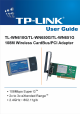 108M Wireless Adapter User Guide TL-WN610G/TL-WN650G/TL-WN651G Appendix A: Specifications Normal Interface TL-WN610G: 32-bit CardBus TL-WN650G/TL-WN651G: 32-bit PCI Standards IEEE802.11b; IEEE802.11g Operating System Windows 98Se, Me, 2000, XP Transmission Distance Indoor up to 100m, outdoor up to 300m (Standard transmission distance, It is limited to the environment).