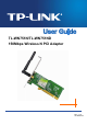 TL-WN751N/TL-WN751ND 150Mbps Wireless N PCI Adapter Chapter 1 Product Overview 1.1 Package Contents Please verify that all the package contents below are available. One TL-WN751N/TL-WN751ND 150Mbps Wireless N PCI Adapter Quick Installation Guide One resource CD for TL-WN751N/TL-WN751ND, including: ¾ ¾ ¾ • • • TP-LINK Wireless Configuration Utility (TWCU) and Drivers User Guide Other helpful information Make sure that the above items are contained in the package.