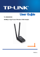 TL-WN8200ND 300Mbps High Power Wireless USB Adapter Package Contents Please verify that all the package contents below are available. ¾ ¾ ¾ ¾ One TL-WN8200ND 300Mbps High Power Wireless USB Adapter Quick Installation Guide One USB extension cable One Resource CD for TL-WN8200ND, including: • • • TP-LINK Wireless Configuration Utility (TWCU) and Drivers User Guide Other helpful information Make sure that the above items are contained in the package.