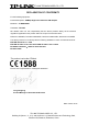 TP-LINK TECHNOLOGIES CO., LTD CE Mark Warning This is a class B product. In a domestic environment, this product may cause radio interference, in which case the user may be required to take adequate measures. This device has been designed to operate with the antennas listed below, and having a maximum gain of 3 dBi. Antennas not included in this list or having a gain greater than 3 dBi are strictly prohibited for use with this device. The required antenna impedance is 50 ohms.