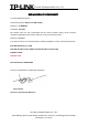 TP-LINK TECHNOLOGIES CO., LTD DECLARATION OF CONFORMITY For the following equipment: Product Description: Wireless N USB Adapter Model No.: TL-WN821N Trademark: TP-LINK We declare under our own responsibility that the above products satisfy all the technical regulations applicable to the product within the scope of Council Directives: Directives 1999/5/EC The above product is in conformity with the following standards or other normative documents: ETSI EN 300 328 V1.7.1: 2006 ETSI EN 301 489-1 V1.8.