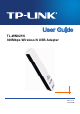 TL-WN821N 300Mbps Wireless N USB Adapter Package Contents The following contents should be found in your box: ¾ One TL-WN821N 300Mbps Wireless N USB Adapter ¾ Quick Installation Guide ¾ One USB cable ¾ One Resource CD for TL-WN821N, including: • TP-LINK Wireless Client Utility (TWCU) and Drivers • User Guide • Other Helpful Information ) Note: Make sure that the package contains the above items. If any of the listed items are damaged or missing, please contact with your distributor.
