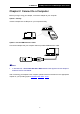 TL-WN821N 300Mbps Wireless N USB Adapter User Guide Chapter 2 Connect to a Computer Before you begin using your adapter, connect the adapter to your computer. Option 1: Directly Insert the adapter into a USB port on your computer directly. Option 2: Via the USB Extension Cable Connect the adapter and your computer with the provided USB extension cable. Note: In Windows XP, a Found New Hardware Wizard window will appear when the adapter is detected. Please click Cancel.