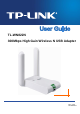 TL-WN822N 300Mbps High Gain Wireless N USB Adapter Chapter 1 Introduction Thank you for choosing the TL-WN822N 300Mbps High Gain Wireless N USB Adapter! 1.1 Overview of the Product The adapter is a 802.11n client device; it is designed to provide a high-speed and unrivaled wireless performance for your notebook. With a faster wireless connection, you can get a better Internet experience, such as downloading, gaming, video streaming and so on. With the 802.