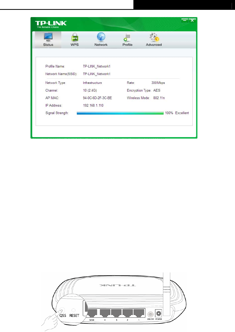 1. Press the QSS (also called WPS) button on the back panel of the router. Here takes router