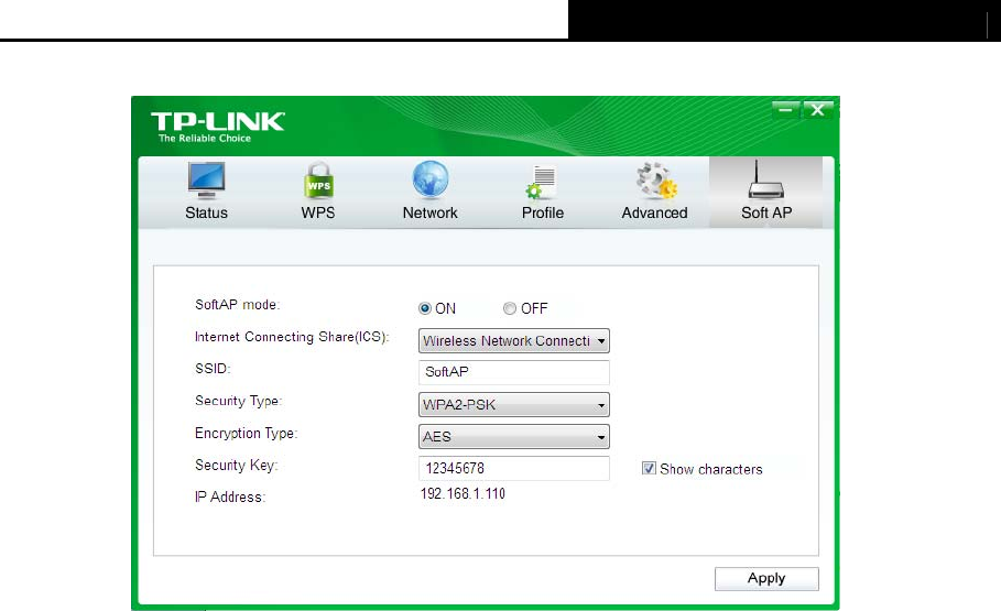 The Soft AP icon should then appear beside Advanced icon in the utility.