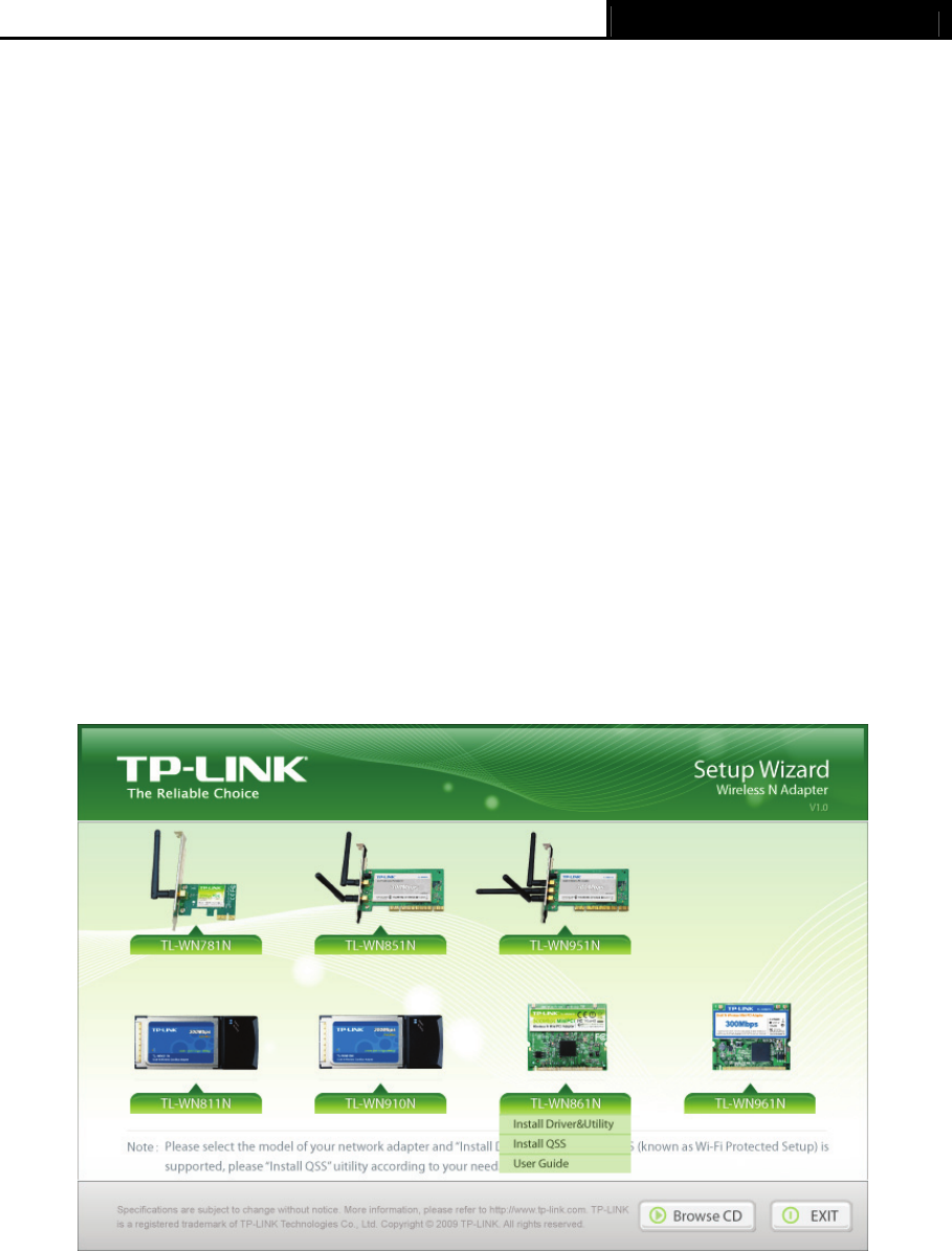 continue, select the TL-WN861N.There will be a menu including: Install Driver & Utility,