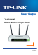 TL-WR1043ND 1.3 Wireless N Gigabit Router Main Features ¾ Complies with IEEE 802.11n to provide a wireless data rate of up to 300Mbps. ¾ One 10/100/1000M Auto-Negotiation RJ45 WAN port, four 10/100/1000M Auto-Negotiation RJ45 LAN ports, supporting Auto MDI/MDIX. ¾ Provides WPA/WPA2, WPA-PSK/WPA2-PSK authentication, TKIP/AES encryption security. ¾ Shares data and Internet access for users, supporting Dynamic IP/Static IP/PPPoE Internet access.
