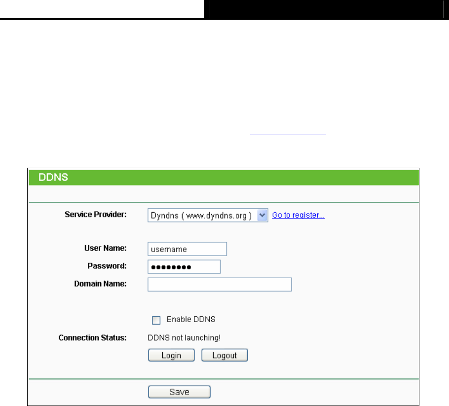 If the dynamic DNS Service Provider you select is www.dyndns.org, the page will appear as
