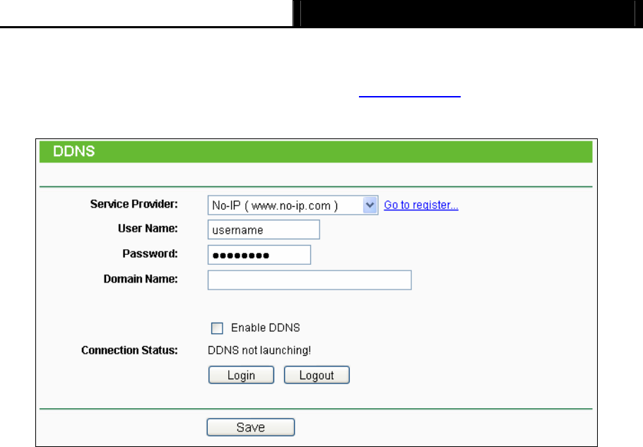 If the dynamic DNS Service Provider you select is www.no-ip.com, the page will appear as