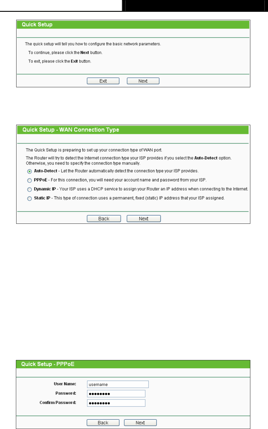 1) If the connection type detected is PPPoE, the next screen will appear as shown in Figure