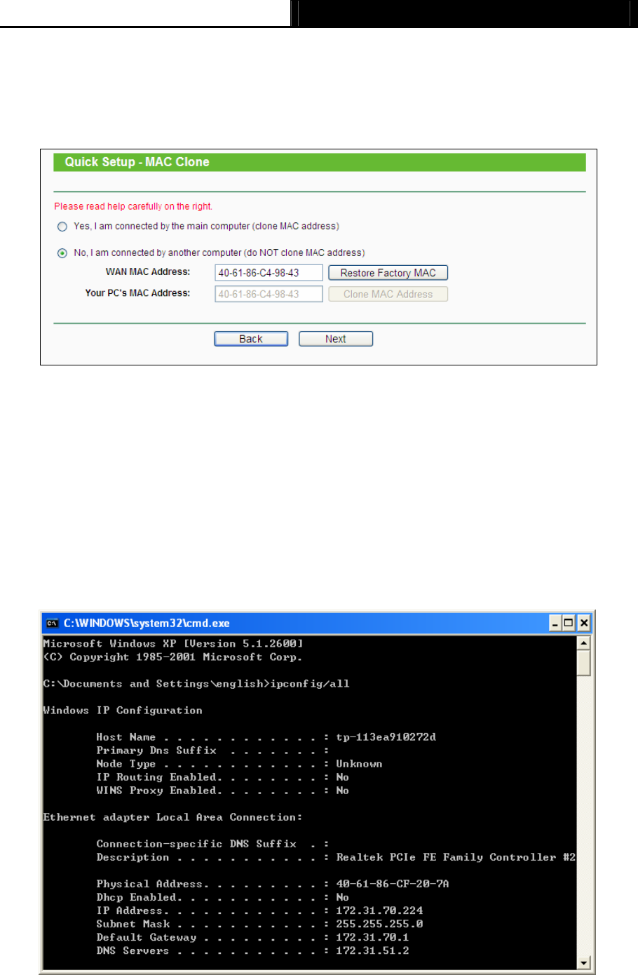 please select No, and then enter the main computer’s MAC in the field WAN MAC