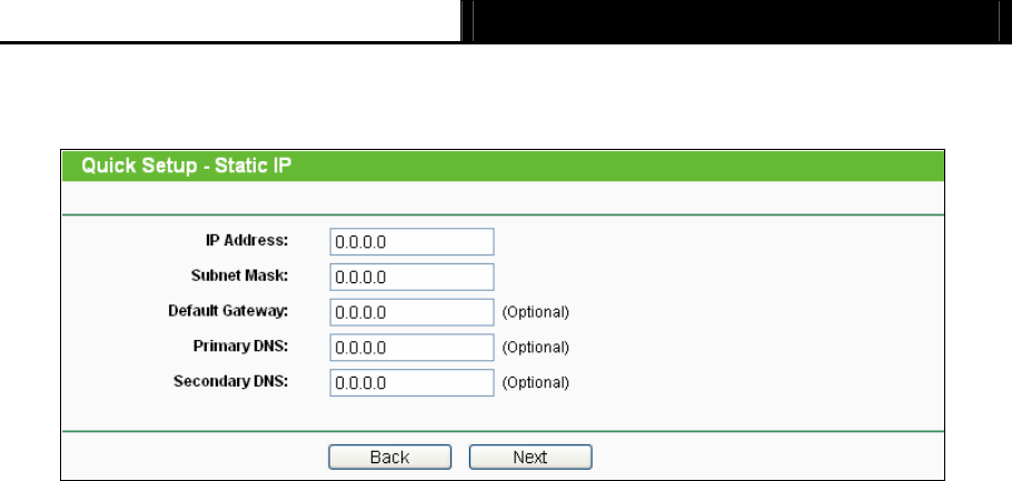 3) If the connection type detected is Static IP, the next screen will appear as shown in Figure
