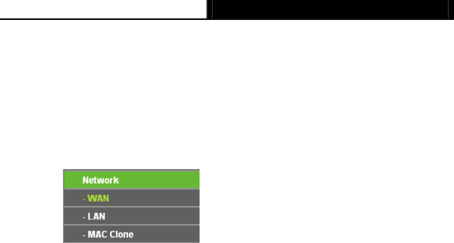 There are three submenus under the Network menu (shown in Figure 4-5): WAN, LAN and MAC