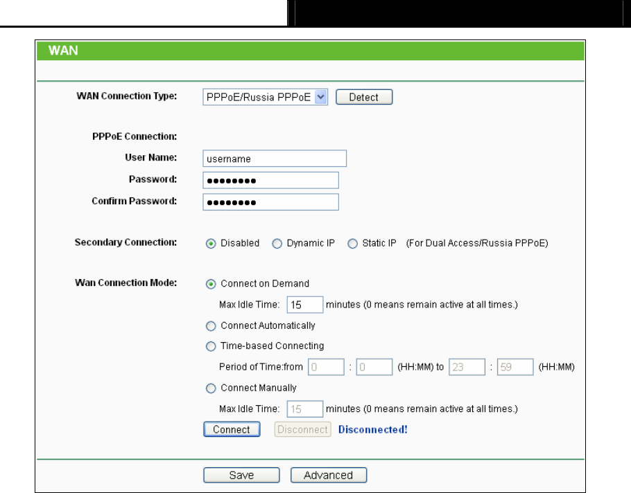 ¾ Connect on Demand - In this mode, the Internet connection can be terminated automatically