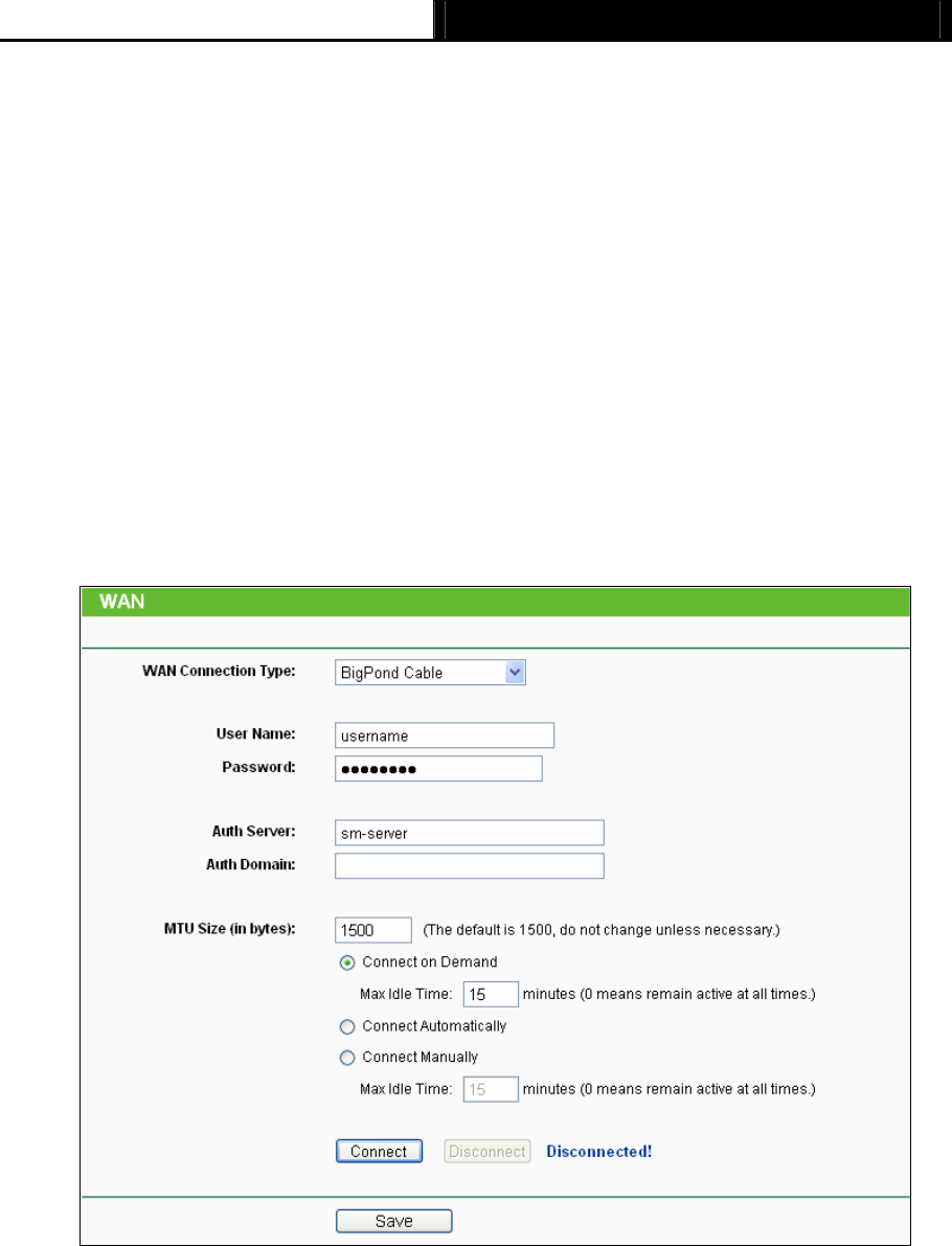 BigPond Cable. And you should enter the following parameters (Figure 4-10):