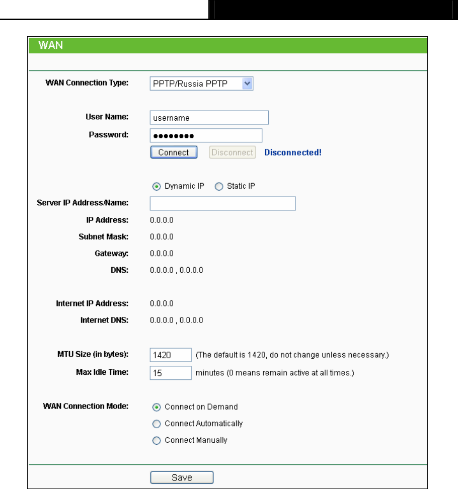 ¾ Connect on Demand - You can configure the Router to disconnect from your Internet
