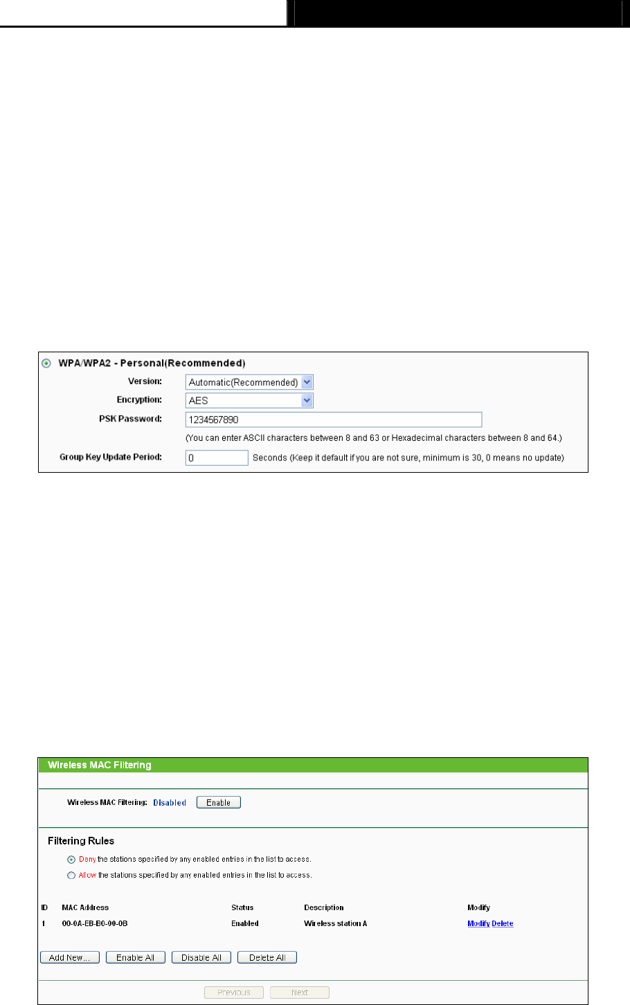 the Wireless MAC Filtering function, shown in Figure 4-24.