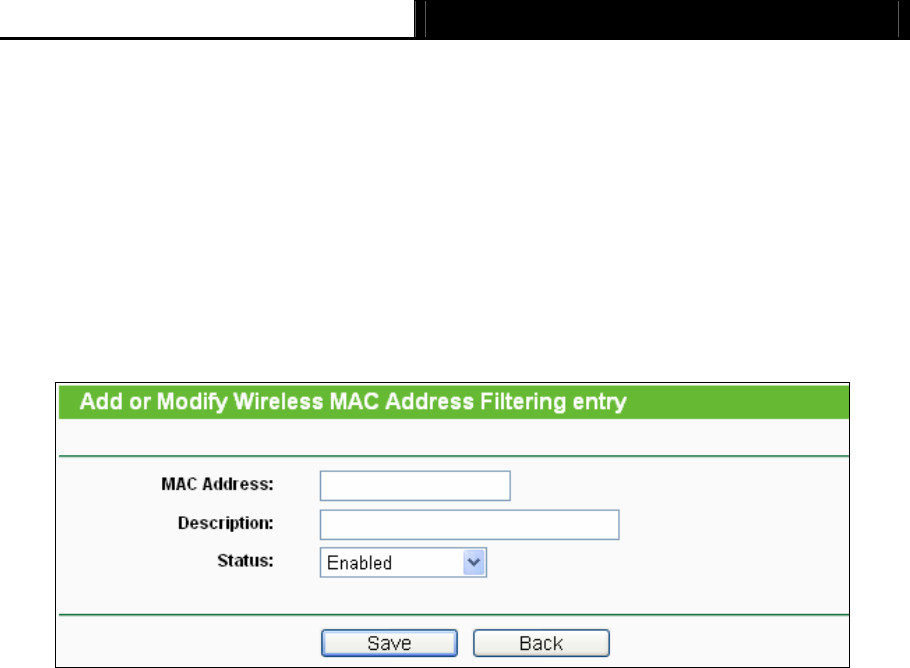 Wireless MAC Address Filtering entry" page will appear, shown in Figure 4-25: