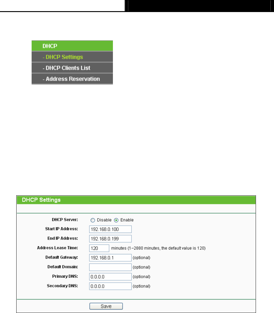 Choose menu “DHCP → DHCP Settings”, you can configure the DHCP Server on the page as