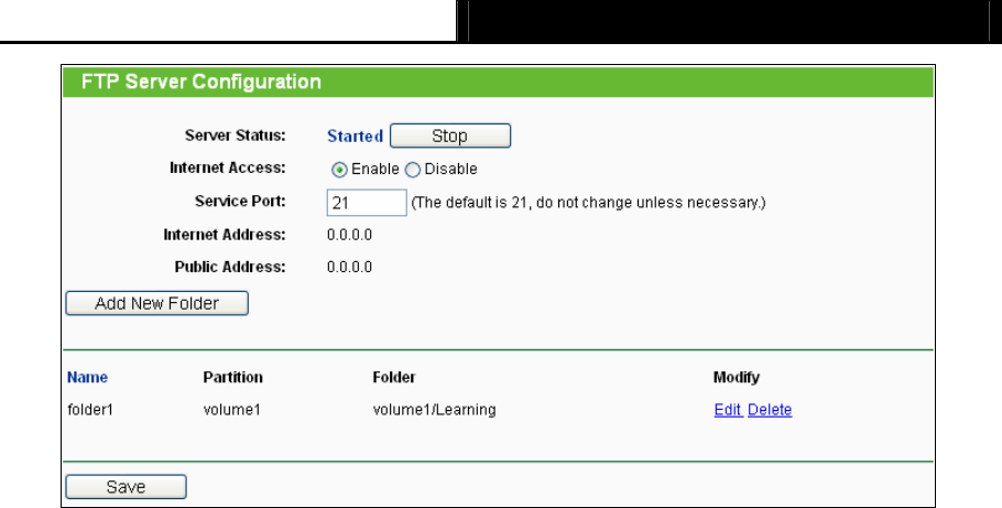 ¾ Internet Access - Select enable to allow access of the FTP server from the Internet.