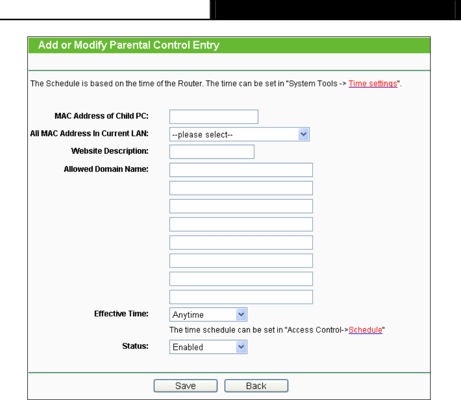 Parental Control - Check Enable if you want this function to take effect; otherwise,
