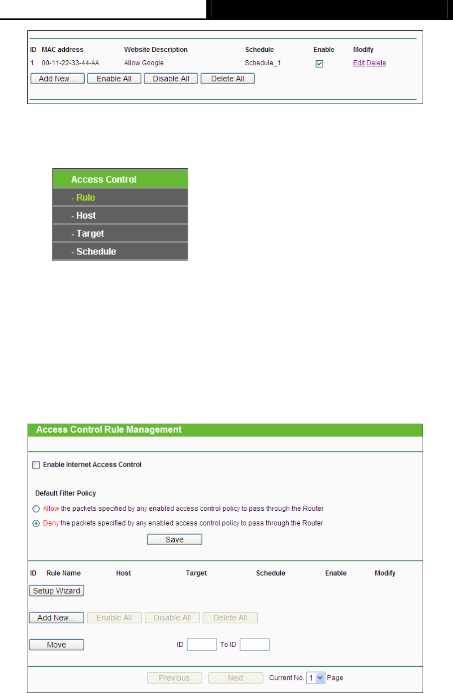 There are four submenus under the Access Control menu as shown in Figure 4-59: Rule, Host,