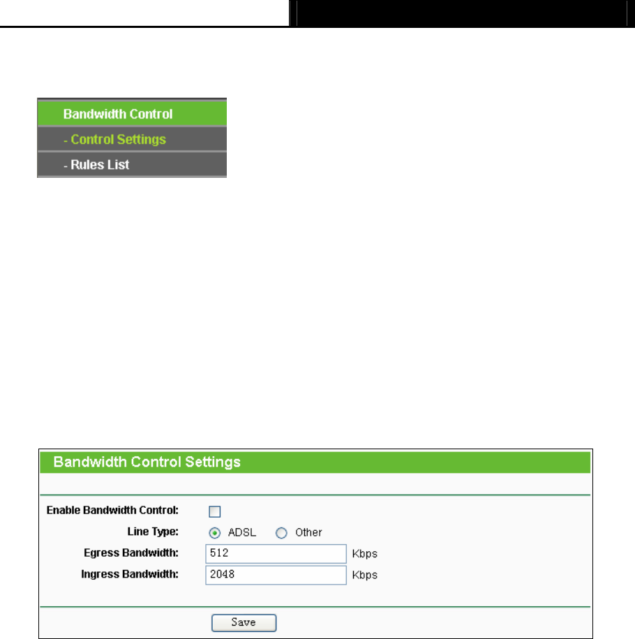 Choose menu “Bandwidth Control → Control Settings”, and then you can configure the