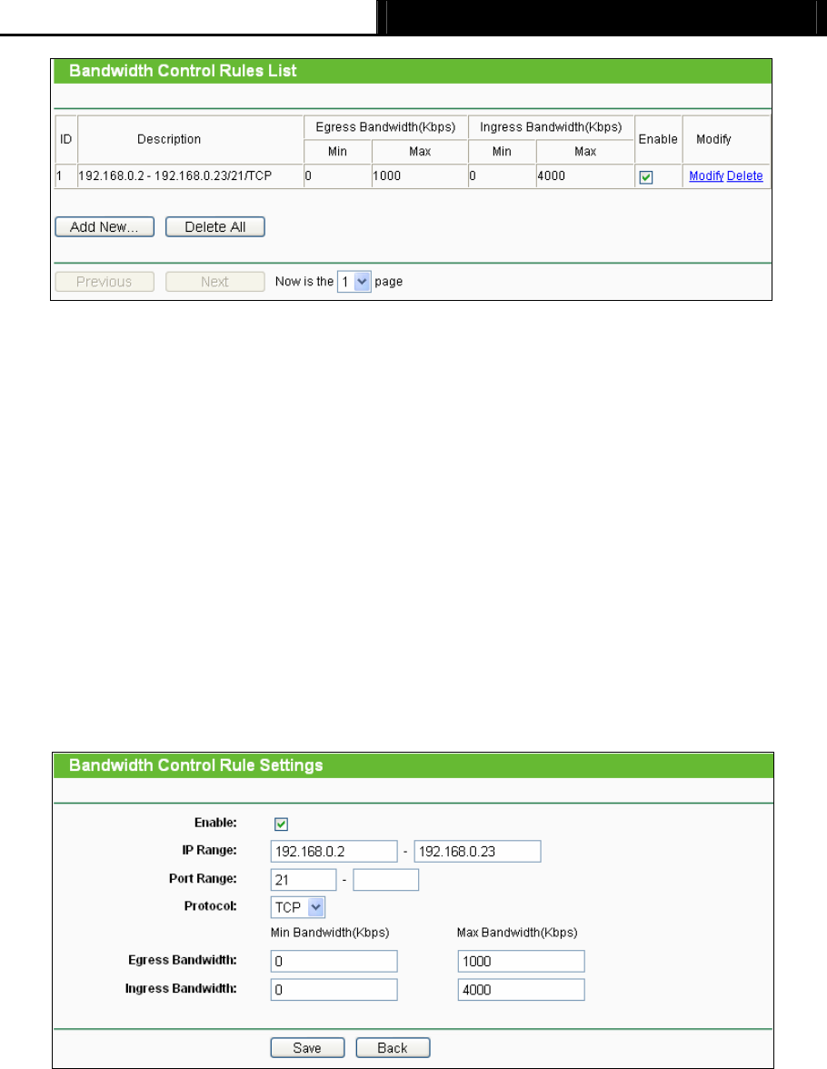 To add/modify a Bandwidth Control rule, follow the steps below.