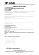 COPYRIGHT & TRADEMARKS Specifications are subject to change without notice. is a registered trademark of TP-LINK TECHNOLOGIES CO., LTD. Other brands and product names are trademarks or registered trademarks of their respective holders. No part of the specifications may be reproduced in any form or by any means or used to make any derivative such as translation, transformation, or adaptation without permission from TP-LINK TECHNOLOGIES CO., LTD. Copyright © 2011 TP-LINK TECHNOLOGIES CO., LTD.