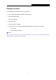 TL-WR702N 150Mbps Wireless N Nano Router Channel Width - The current wireless channel width in use. MAC address - The physical address of the Router, as seen from the WLAN. WDS Status - The status of WDS connection. System Up Time - The length of the time since the Router was last powered on or reset. Click the Refresh button to get the latest status and settings of the Router. 4.3 Quick Setup Please refer to Section 3.2: "Quick Installation Guide." 4.