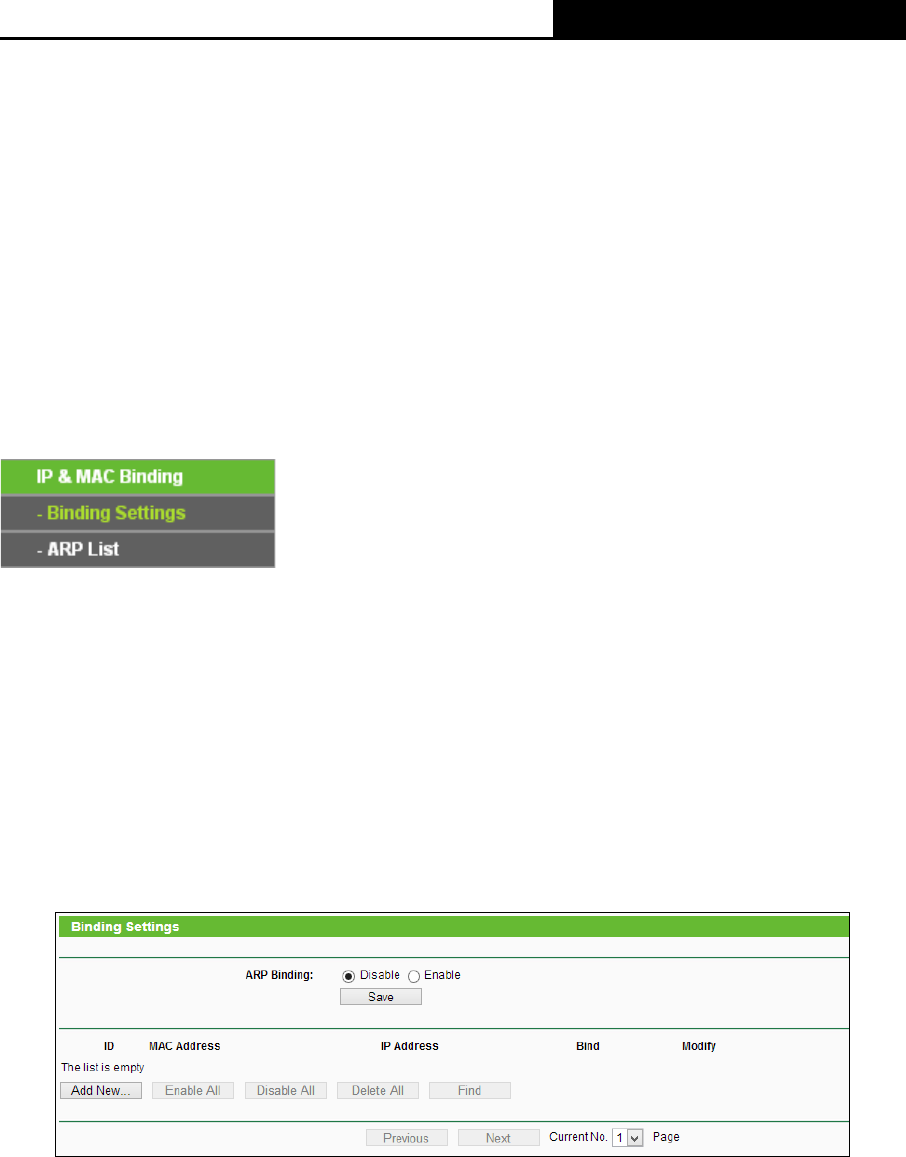 This page displays the IP & MAC Binding Setting table; you can operate it in accord with your