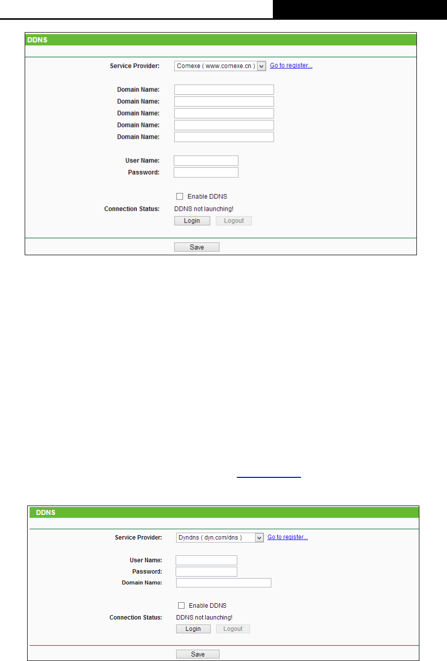 If the dynamic DNS Service Provider you select is www.dyn.com, the page will appear as shown