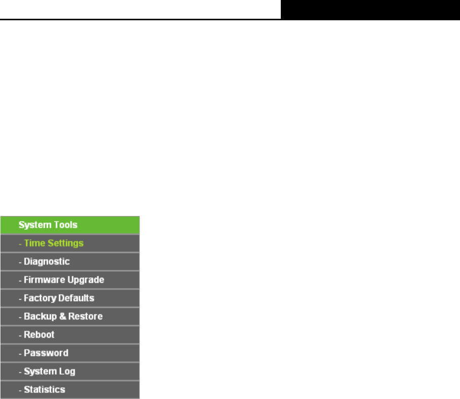 There are nine submenus under the System Tools menu: Time Settings, Diagnostic, Firmware